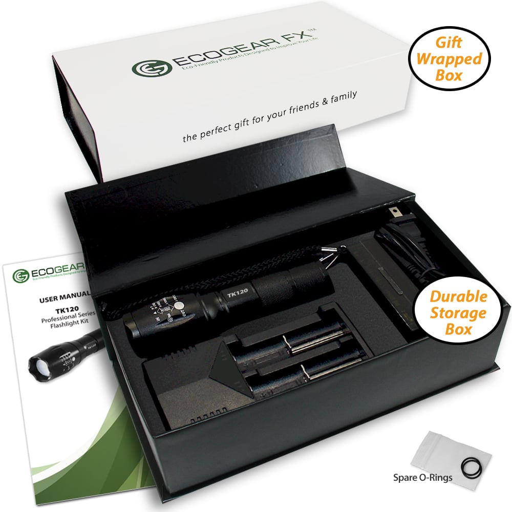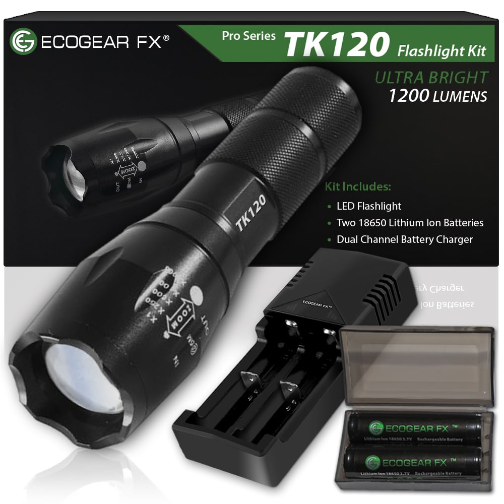 TK120 Professional LED Flashlight Kit with Batteries & Charger