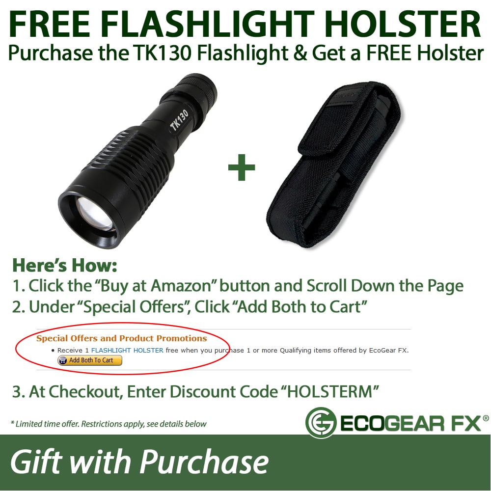 1 x TK130 Flashlight with Zoom 1 x Attached Lanyard 1 x AAA Battery Holder 1 x Sleeve for Lithium-ion Battery The perfect flashlight for home use, outdoor sports, fishing and security!   *Batteries not included