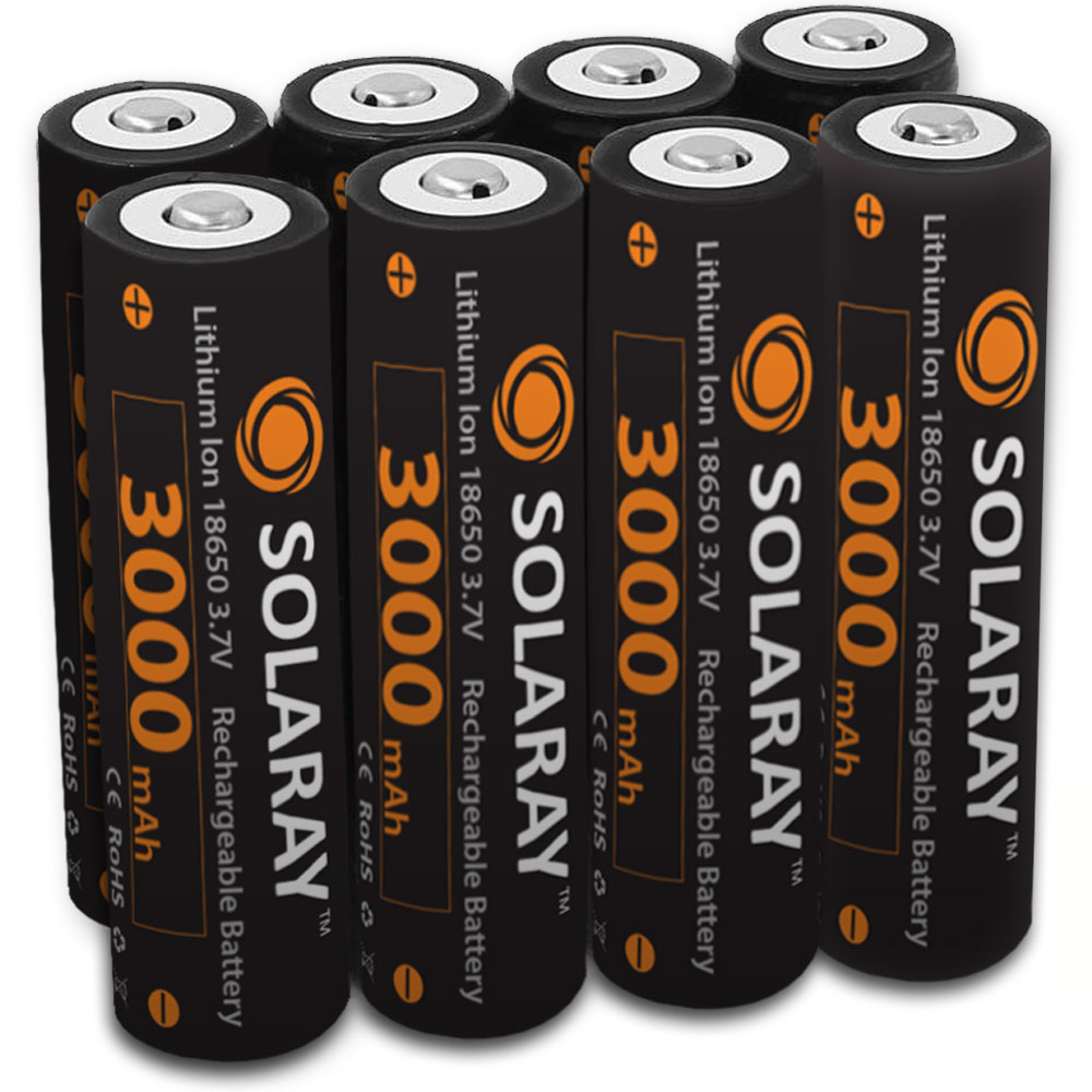 High powered 18650 lithium flashlight batteries offering 3000mAh of reliable power. 18650 lithium-ion rechargeable batteries are unique and are packed with an amazingly amount of powerful energy. This provides dramatically increased longevity, low self-discharge, efficiency and optimized usage time. When you think of batteries, what might come to mind  is what you have seen in most in the store aisles. There is the widely used AA or AAA alkaline size batteries. However, alkaline batteries are old out-dated technology and cannot match the power of lithium-ion batteries. These 18650 lithium flashlight batteries deliver the power needed and offer up to 500 charging cycles. These rechargeable lithium ion batteries are the best for using in LED flashlights, video doorbells, camping lanterns, indoor fans, portable radios, bluetooth speakers, work lights, motion lights, cordless power tools, solar yard lights and many other low drain devices. Lithium rechargeable batteries are also used in aerospace technologies applications (radio-controlled models, model aircraft, the Mars Curiosity rover, etc.). Theses batteries are protected with a small built-in electronic circuit which prevents overcharging and over-discharging. NOTE: These batteries are NOT recommended for high-drain devices (i.e. Vaping Products). Features and Benefits: • Integrated PCB Protection • Lithium Ion 18650 cylindrical rechargeable batteries • Internal PCB protection prevents under-voltage at 2.5V and over-voltage at 4.25V • Higher energy density and lower weight than many other rechargeable 18650 lithium flashlight batteries Battery Specifications: • Capacity: Nominal&: 3000mAh, Minimum: 2600 mAh • Internal PCB protection prevents under-voltage at 2.5V and over-voltage at 4.25V • Nominal Voltage: Average 3.7V • Cut-off Voltage: 2.5V • Internal Impedance: less or equal to 180 milli-ohm (with PTC) • Cycle Performance: 90% of initial capacity at 400 cycles • Cycle life: > 500 cycles • Charge: Current = 0.5C (~1500mA) Voltage = 4.2 V End Current = 0.01 mA • Discharge: Current = 0.5C (~1500mA) End Voltage = 3.0V